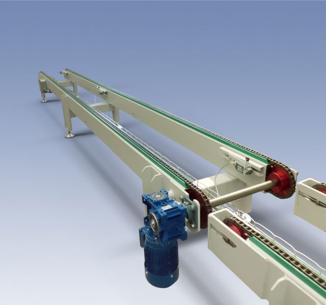 Trasportatore a nastro inclinato per evacuazione sfridi